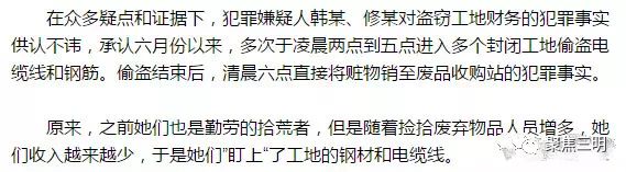 接报后,公安机关立即组织民警展开调查,经过半个月的摸排走访,民警发现了几名可疑的“拾荒”妇女,她们一般凌晨两点至五点在工地转悠,六点左右在废品收购站出入,嫌疑很大!