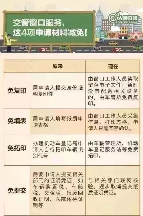 除了申请材料减免外,驾管大队对系统进行升级,实现损坏换证、遗失补证、延期审验、延期提交《身体条件证明》、变更联系方式等6项简单业务一证即办。