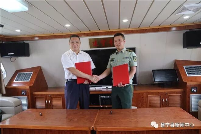 上午9时,在海警码头,该支队官兵整齐列队,在雄壮的国歌声中,省海警一支队二大队海警35097艇命名“建宁号”仪式正式举行。建宁县与省海警一支队“建宁号”签订了共建协议书。