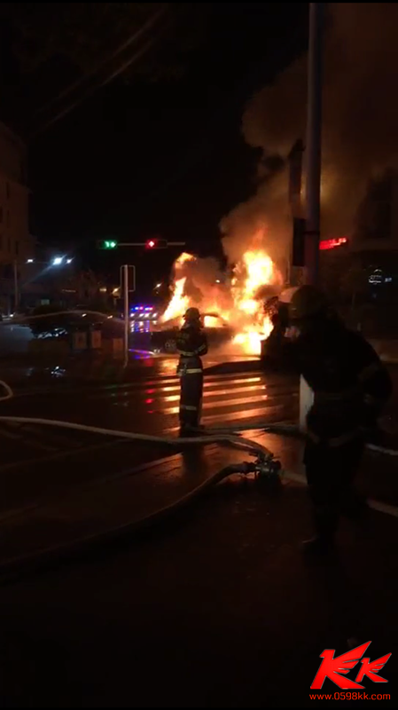 晚上,沙县金山角红绿灯附近一小车起火,消防人员及时赶到,不顾小车随时会爆炸的危险,奋不顾身灭车火。这车火烧得这么大,应该人没事吧?别问我是怎么起火那就不知道!
