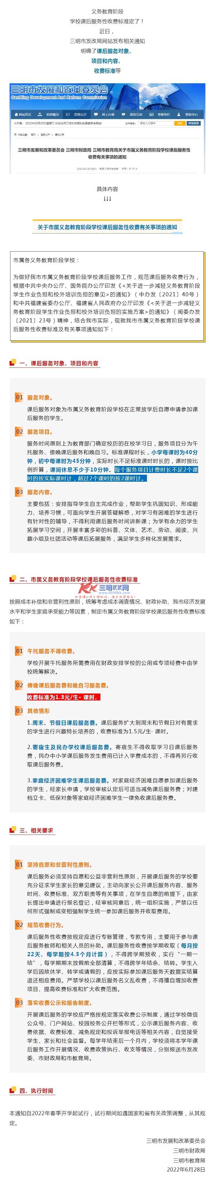 定了!三明义务教育阶段学校课后服务性收费标准公布!