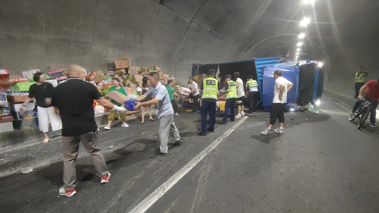 8月25日14时45分许,在长深高速A道余厝隧道内,一辆小型轿车行车记录仪拍下惊魂一幕:一辆轻型厢式货车径直撞向右侧隧道壁后,侧翻在两个车道之间,货物全部散落地面,现场通行受阻。 ...