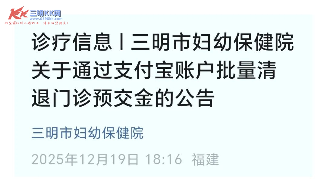 三明这家医院通知,将通过支付宝退钱